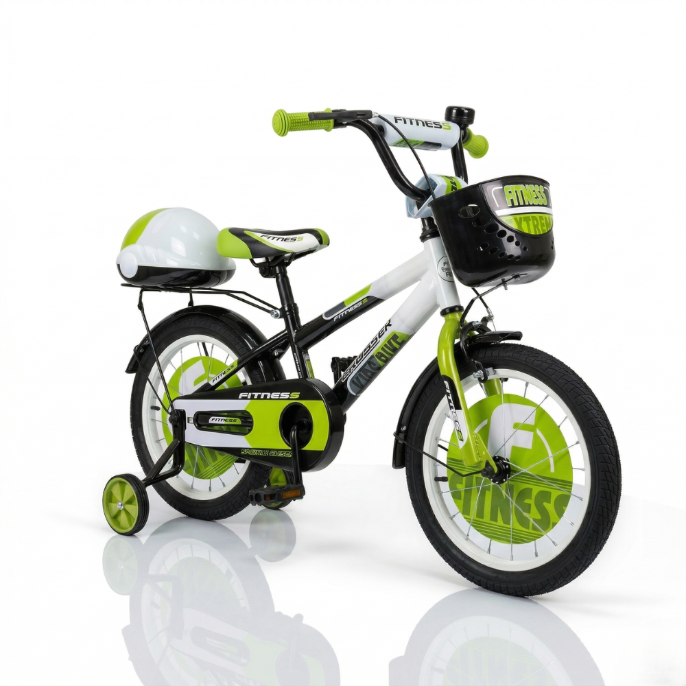 Dečija bicikla 16“ Fitness Crno – Zelena- Funkcionalna dečija bicikla na 2 točka