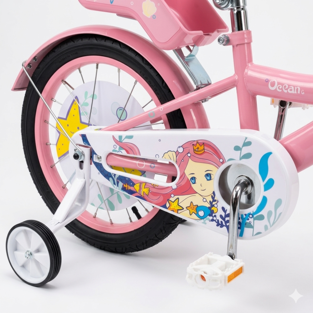 Dečija bicikla 20“ Ocean  predstavlja najbolji poklon kome će se radovati sve devojčice uzrasta od 5 do 8 godina. Dizajn ovog bicikla odiše jednostavnošću i elegancijom. Dizajn sa niskim prelazom idealan je za Vaše dete i omogućava lakše penjanje i spuštanje  svakoj devojčici na ovu dečiju biciklu.