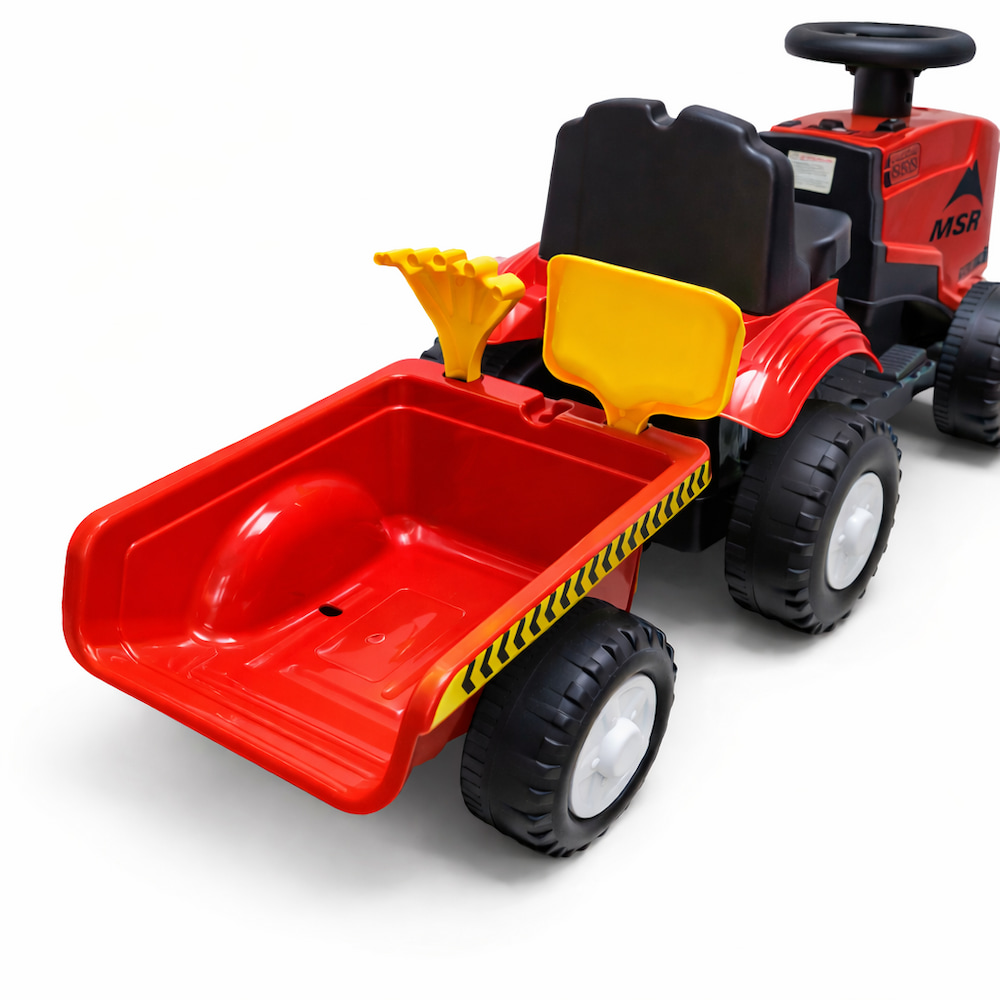 Dok bageri služe za „teške građevinske radove“, ovaj traktor je pravi heroj transporta. Njegova najveća prednost je multifunkcionalnost – dete može da vozi samo traktor kada želi brzinu, ili da zakači prikolicu kada je vreme za prevoz tereta. Lagan je za prenošenje, a zahvaljujući zvučnim i svetlosnim efektima, zabava nikada ne prestaje.